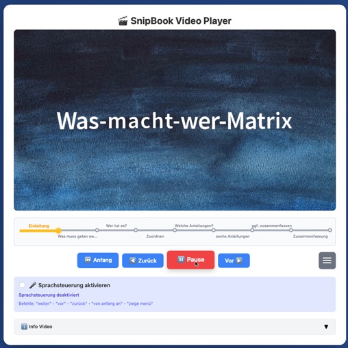 Im Grunde kann es sinnvoll sein, eine Schritt-für-Schritt-Anleitung als Video zu produzieren und die Schritte als SnipBook zu zeigen.